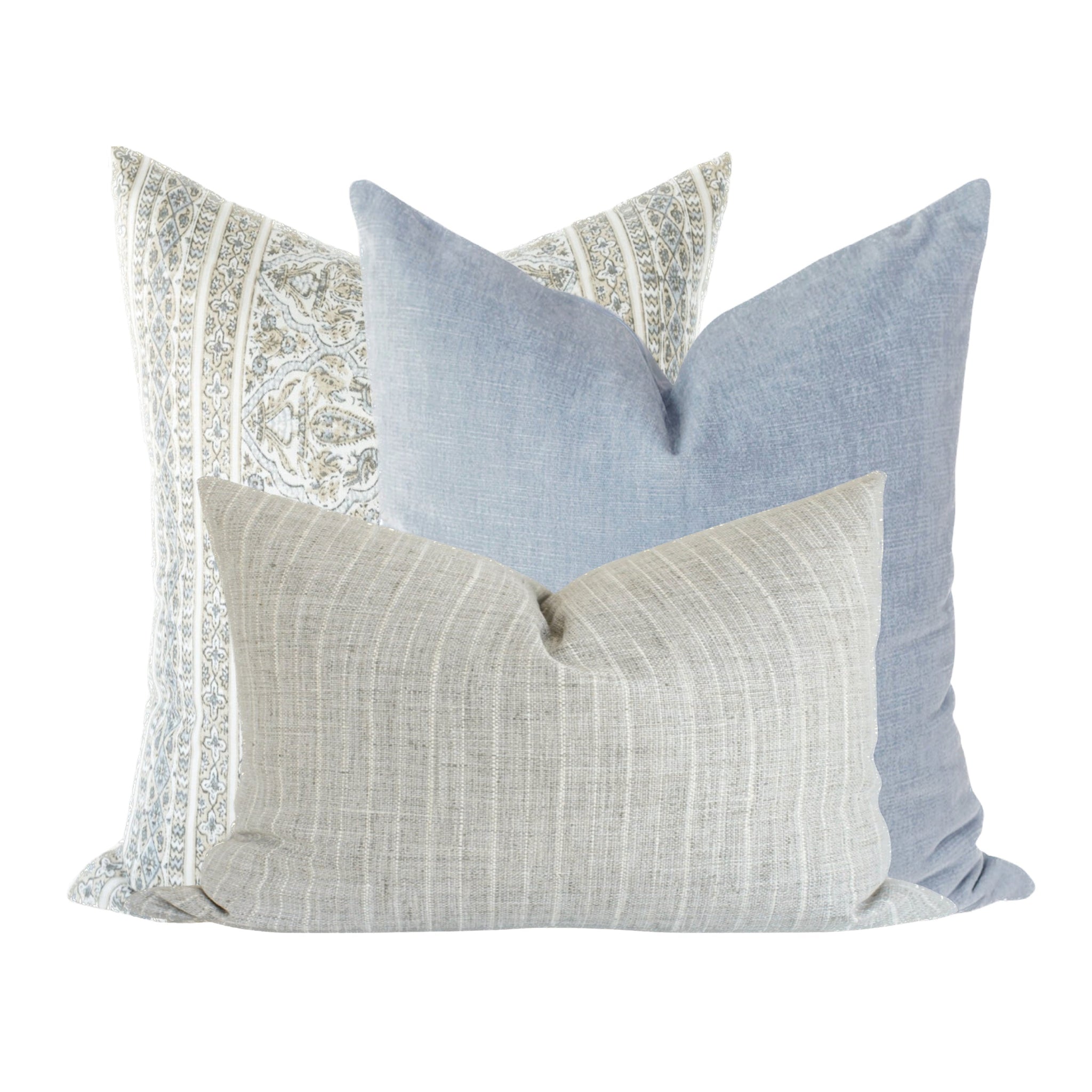 Bring a sense of calm, refined beauty into your space with the Athena, Ellie, and Grant pillow combination. This trio is the perfect balance of soft color, delicate pattern, and grounding texture, creating a look that feels both elevated and effortlessly livable.